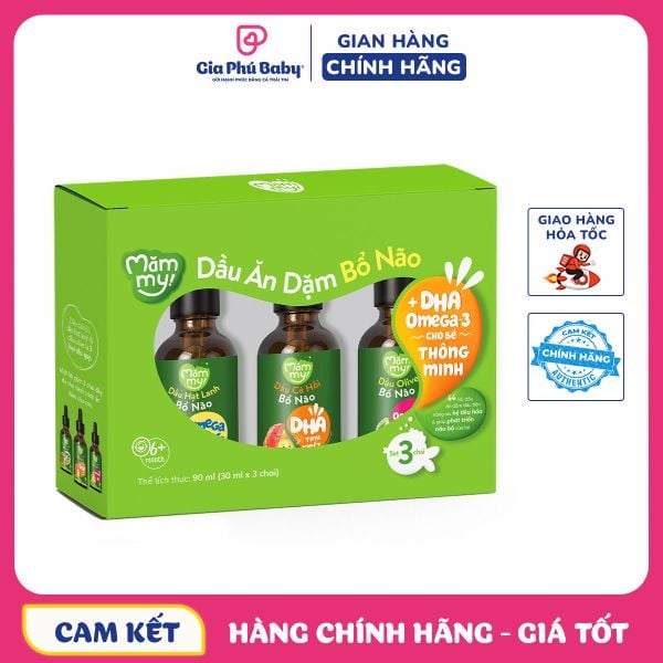 🚀 Hãy cùng Gia Phú Baby chăm sóc trí não, thị lực và sức khoẻ bé yêu bằng Set 3 Chai Dầu Ăn Dặm Mămmy — nguồn DHA, Omega-3 hoàn toàn từ tự nhiên, tiện dụng, phù hợp với nhu cầu phát triển của bé từ giai đoạn ăn dặm.